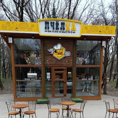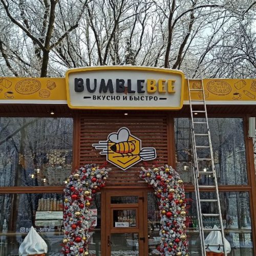 Рекламная группа «ДНК» завершила работы по модернизации вывески кафе «Пчёлка». Задача состояла в замене англоязычных элементов на русскоязычные с соблюдением всех законодательных требований и сохранением фирменного стиля заведения.